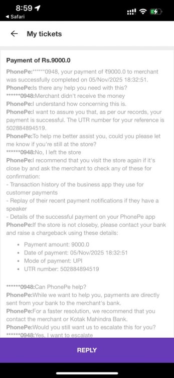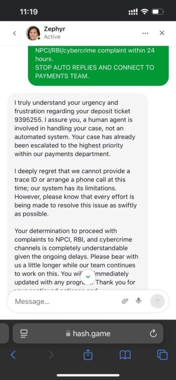 11. This is not the first time I’m facing this nonsense. On 8 September, I made another deposit of ₹1,000 that you never resolved — not even after two months of waiting and following up. That was frustrating enough, but now ₹9,000 missing? This is ridiculous and completely unacceptable. If this is how you handle user funds, then you’re putting your entire credibility at risk. I’m not going to sit quietly this time — either credit the ₹9,000 to my account immediately or refund it back to my payment source without further excuses. I have attached the PhonePe transaction proof showing the successful payment. I expect a proper resolution, not another generic response. Handle this seriously — this is the second time, and I will not let this go ignored. Bc game id 99007906