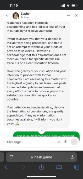 9. Greetings to all!I had to register to leave a review of my experience on this site.9378836 - This case has been open for a week. The issue is that my deposit became problematic due to a usdt memo on the ton network. The memo has now been removed, but the problem remains.I've been writing all week hoping for updates, but support is completely helpless. I only get a generic message about the importance of patience, how they appreciate and understand me, and are generally on my side. But they can't give me any timeframes, because my key is "a priority," and they've been working with the entire team to resolve it, but they can't seem to find a solution. I've also been using the check-in bonus on Telegram all week. Today is Sunday, and I was supposed to receive my reward (I thought I'd at least be able to play that way), but I haven't received it, and honestly, I'm not even surprised.And the apogee of it all is today's communication with support. I approached them with a reasonable question: I want to play, how do I do it? I can't play with my own money or with bonus money, because neither works. Please give me a solution! And you know what I get in response? The agents leave the chat; they simply stop responding and leave the chat!)))I've never encountered such a service! They don't offer any kind of personal bonus in their chat for this kind of situation, or any kind of compensation while I'm forced to wait. They claim their entire team can't resolve the issue, and they can't provide any recommendations or deadlines.Overall, it was humiliating trying to play in bc.game. Peace and blessings to all.