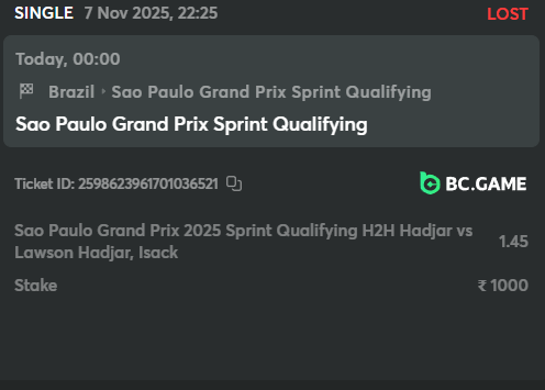 12. Hi guys, I have placed the bet on Hadjar to win F1 sprint Qualifying H2H Hadjar vs lawson. Hadjar finished 9th and lawson on 17th but my bet has lost. what should I do I cannot connect the customer support also.