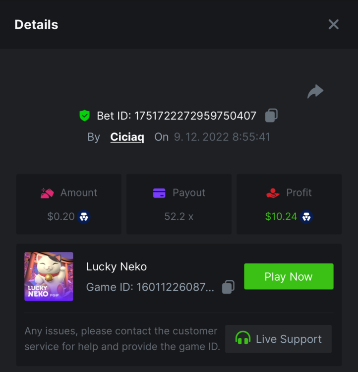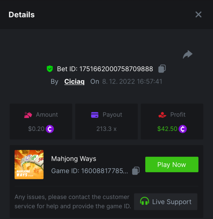 8. Wild Spin - 108.4x https://bc.game/#/sd/10XHK7U8901X5F Wild Crowns - 87.5x https://bc.game/#/sd/10XHQ8W683NGNN Book of Light - 170.5x https://bc.game/#/sd/10XHODMA7L49HV Lucky Cat - 226x https://bc.game/#/sd/10XHHEOEKPFJ0Z Ways of the Gauls - 151.6x https://bc.game/#/sd/10XGUKCQOVPHXV