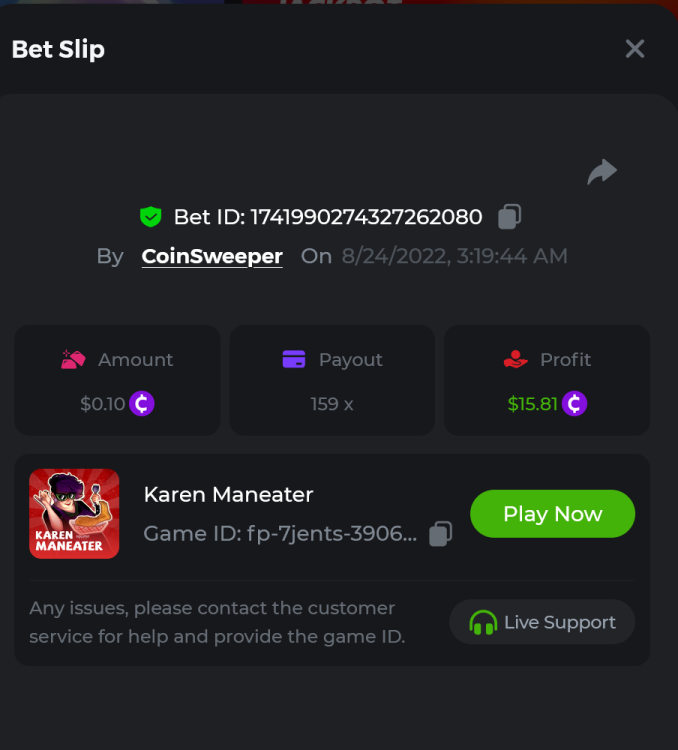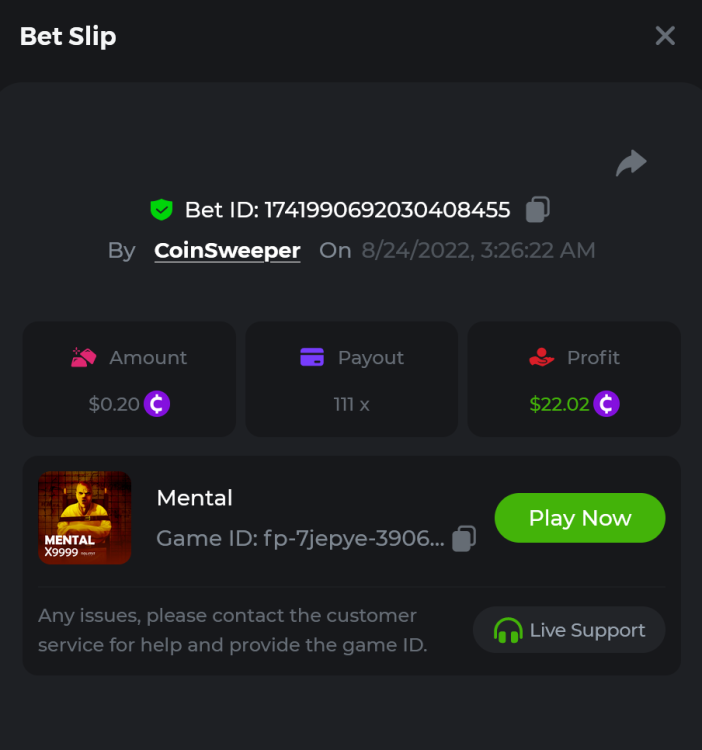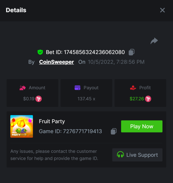 5. https://bc.game/#/sd/10UF8OAHLT0XLF - 375.0253x https://bc.game/#/sd/10UF45UTXGV6DV - 137x https://bc.game/#/sd/10UF4L9PN0PPUB - 115x https://bc.game/#/sd/10UF5LQ2USBBBN - 110x https://bc.game/#/sd/10UF9BZOYZUTCJ - 523.9 x https://bc.game/#/sd/10UFAK7HTDUWPF - 171.8x https://bc.game/#/sd/10UFBOWUNK3DAR - 95.4x https://bc.game/#/sd/10UF7SLOKLRTOZ - 50x - Bounty https://bc.game/#/sd/10UFBXW23LF9JN - 116.5x https://bc.game/#/sd/10UFCM2WB6JWUR - 190x https://bc.game/#/sd/10UFD5FS7F0QVN - 136.85 https://bc.game/#/sd/10UFDPDK1Q83KJ - 150x https://bc.game/#/sd/10UFE79T53LGR7 - 302.7x