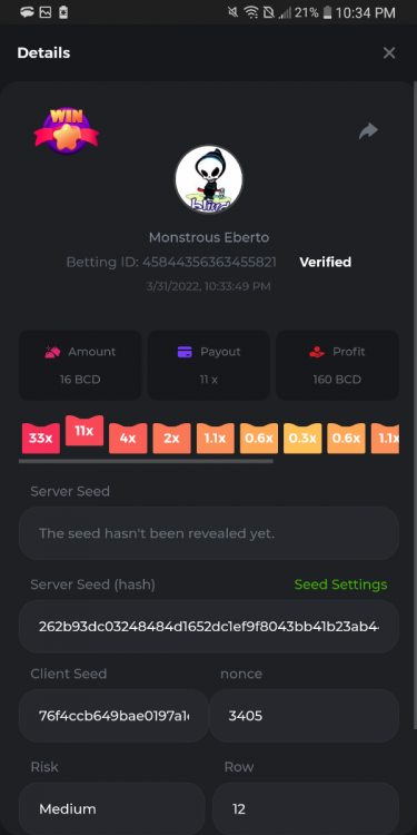 In case anyone finds these helpful. Low Risk Payouts; Classic Risk Payouts; Medium Risk Payouts; High Risk Payouts; If you spot any mistakes please let me know and ill fix it really quick. I've double checked multiple times and i dont see any myself. Should be good to go. Gonna post them in Keno section as well.