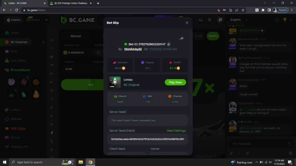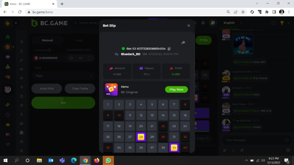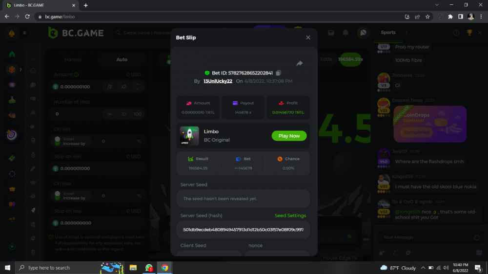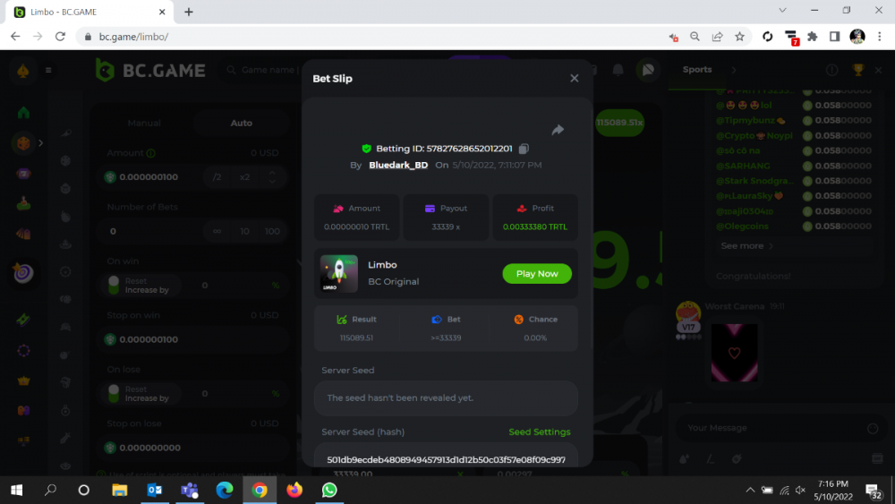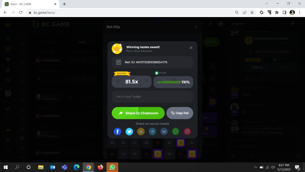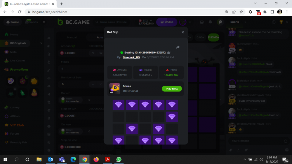 https://bc.game/sd/?sd=10KCTT2DWVITQR The bet amount was .00001 equivalent but because of decreasing coin value it shows .00000964