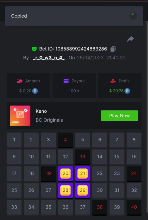 EASY 1. Classic Dice x5 https://bc.game/#/sd/1172TUVX2L3H1V 2.Baccarat Tie https://bc.game/#/sd/11732KXMI1SVF7 3. Crash x10 https://bc.game/#/sd/11734RSKY2XMHF 4. Egyptian x10 https://bc.game/#/sd/1172VH8RHDJ7KJ 5. Oriental beauties x20 https://bc.game/#/sd/1173478JVT0HSJ 6. Cave Plunder x7.5 https://bc.game/#/sd/1172V4QP59YM8J 7. sports 1.5 odds Ticket ID: 2256135545690394958 8. Hello Easter x20 https://bc.game/#/sd/11733P4GUHJUOJ 9. Lucky Easter x30 https://bc.game/#/sd/11733CVSKO9IQB 10. DONE MEDIUM 1.Roulette Single x36 https://bc.game/#/sd/1172ULBVHZUA6R 2. Plinko x76 https://bc.game/#/sd/11732A4K12DES3 3. ring of fortune x99 https://bc.game/#/sd/11749XIMLUF9XV 4. Sport x2 odds Ticket ID: 2256137505235669078 6. Keno x50 7, 30 ,8 https://bc.game/#/sd/11732XQ1RPO6XF 9. Easter eggs x100 https://bc.game/#/sd/117JA802HENGNN 10. Bonus bunnies x100 https://bc.game/#/sd/117HE08BW09JIR HARD 1. Wheel x49.5 https://bc.game/#/sd/1172U64K26OT1V 2. Plinko x420 https://bc.game/#/sd/117C0SS64GF6KZ 3. limbo x500 https://bc.game/#/sd/1174AHPHKU5N2R 6. Mines https://bc.game/#/sd/1177HA4DV5XBTF -