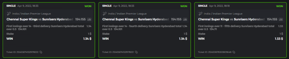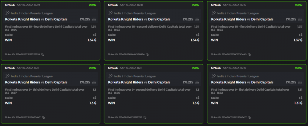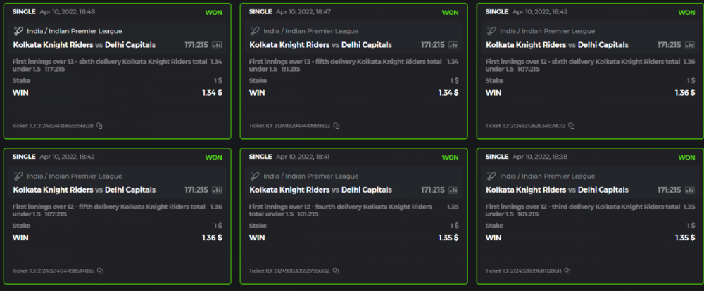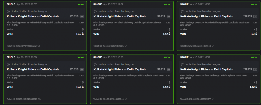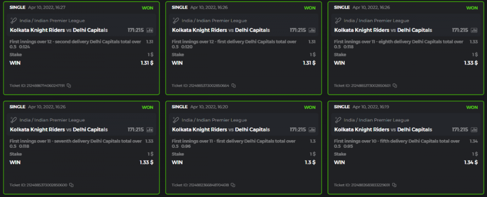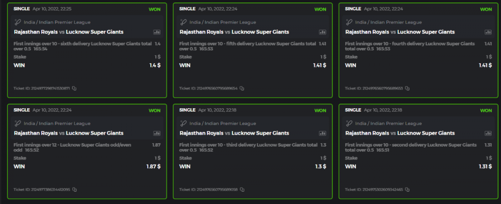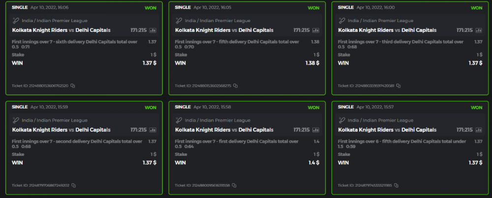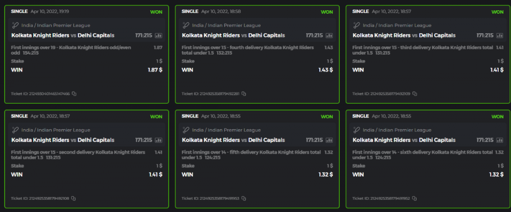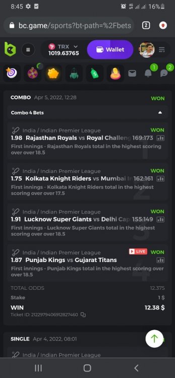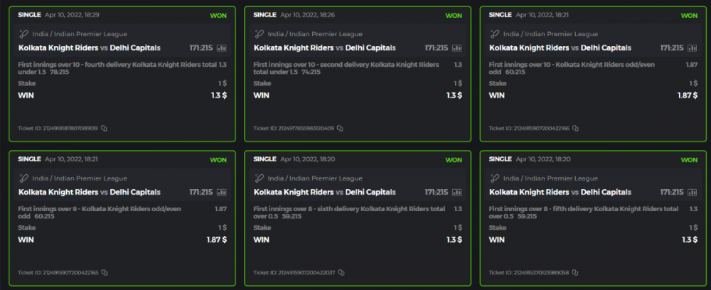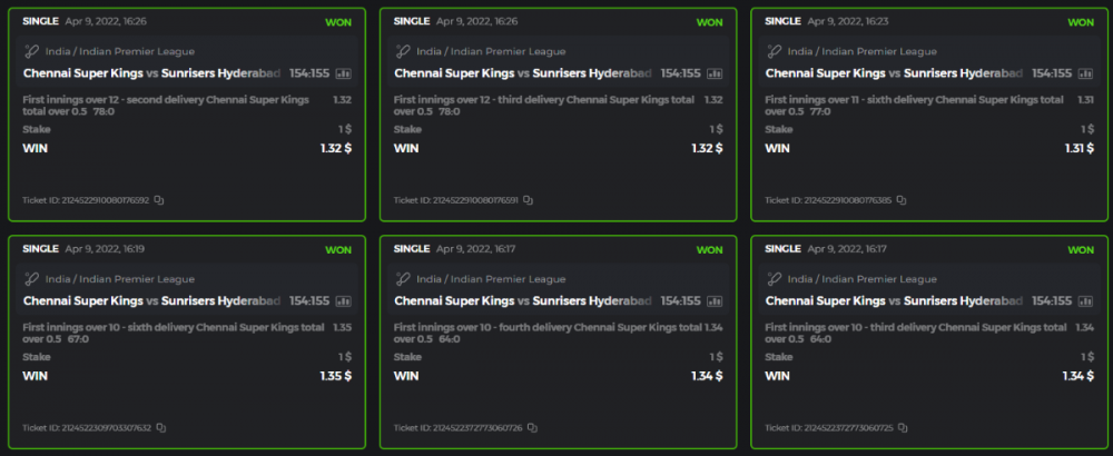 10. Well played bro but i Think your parlay combo bets are invalid because the Minimum odds pr match is 1.3 so you placed bet in combo of 4 than total odds must be atleast 2.8561 but total odds of your parlay combo bets showing 1.78 it means you have selected market lower then 1.3 in combo bet. please upload full screen shot like this of your combo bets so other competitors can see odds and can see that you have placed bets in IPl only in combo bet.. Thanks