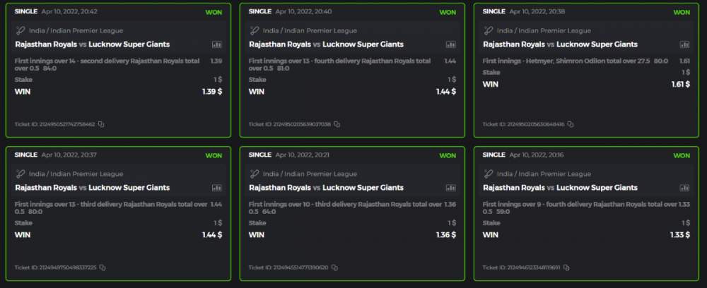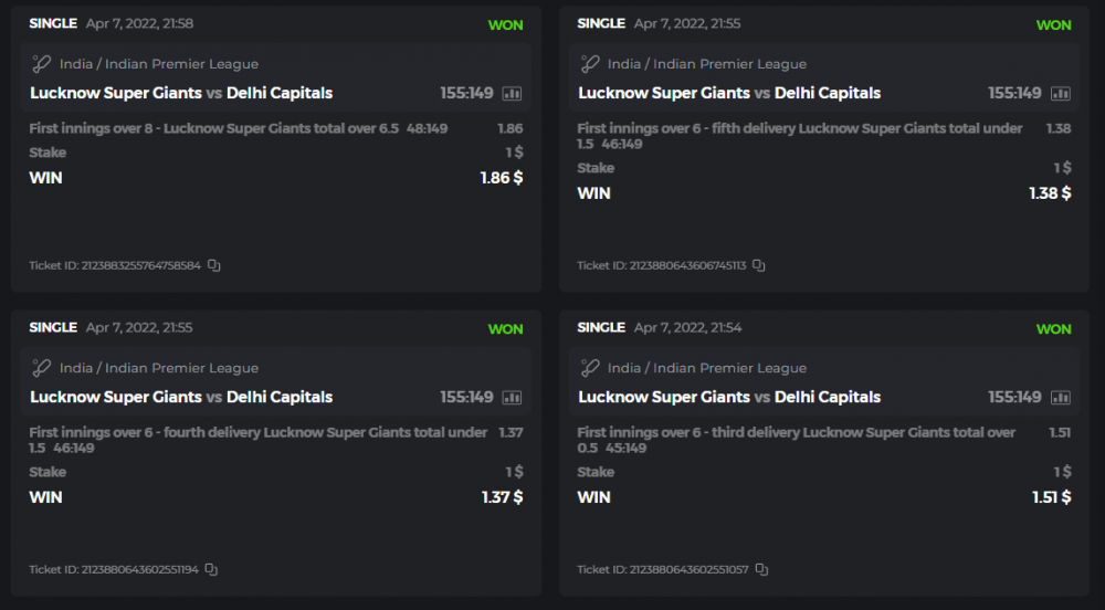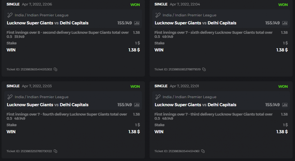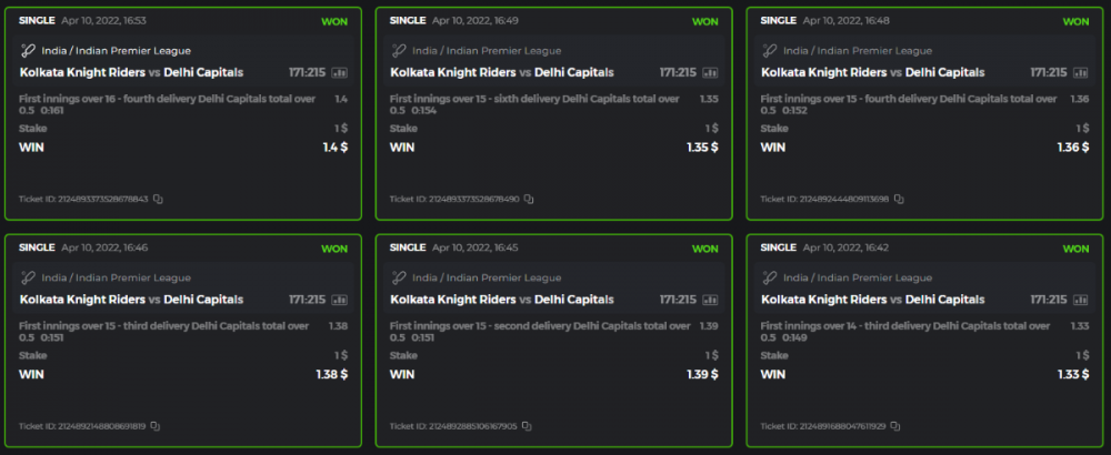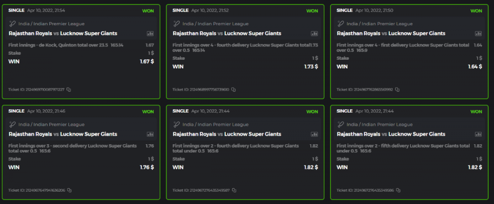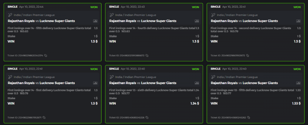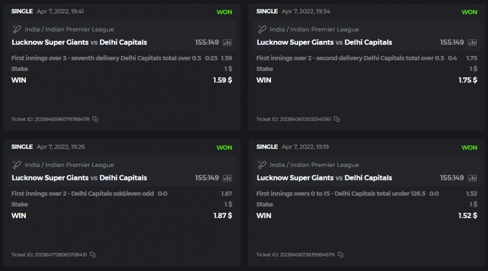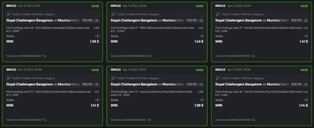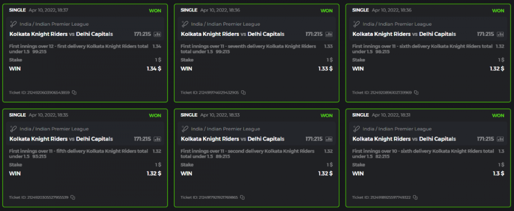 10. Well played bro but i Think your parlay combo bets are invalid because the Minimum odds pr match is 1.3 so you placed bet in combo of 4 than total odds must be atleast 2.8561 but total odds of your parlay combo bets showing 1.78 it means you have selected market lower then 1.3 in combo bet. please upload full screen shot like this of your combo bets so other competitors can see odds and can see that you have placed bets in IPl only in combo bet.. Thanks