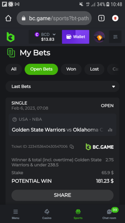 6. I've joined the forum event; Now it's your turn to win generous rewards from BC.GAME! Sport Ticket ID : 2226354183639015681