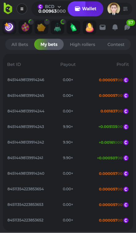 7. چالش : در این چالش هر ڪاربر مجاز است 3 شات با بیشترین تعداد ضریب 9.9 ایڪس متوالے در بازی لیمـبو را به اشتراڪ بگذارد . ڪاربرانے ڪہ بتوانند بالاترین مجموع ضرایب را ڪسب ڪنند برنده خواهند بود . چالش به این صورت است ڪہ ڪاربر 3 بار فرصت دارد ضرایب متوالے را ڪسب ڪرده و شات اسڪرین صفحہ مای بت (شرط های من) را به اشتراڪ بگذارد . مجموع (توالے ضرایب) 3 شات ڪاربر ، به عنوان امتیاز او در نظر گرفتہ خواهد شد . به عنوان مثال ، شما یڪ بار شات 4 ضریب متوالے و در شات بعدی 3 ضریب متوالے و برای آخرین فرصت خود ، 5 ضریب متوالے از 9.9 ایڪس را به اشتراڪ گذاشتہ اید . امتیــاز شما به صورت زیر محاســبـہ می شود : 4+3+5=12 points ──── ❖ ── ✦ ── ❖ ──── : شرایط چالش حداقل پایہ شرط : مینیموم تمامے ارزها به جز جی بی - ✫ حداقل سطح ڪاربر : تمامے لول ها- ✫ : نڪات مهم ڪاربر برای هر توالے ضریب ، مجـــاز بہ ارسال فقط 1 شات اسڪـــرین (از صفحہ مای بت) مے باشد .✪ از ارسال شاتہای اضافے و قدیمے برای یڪ ضریب ، خود دارے ڪنید .✪ ارسال تمامے لینڪ شرطہا بہ همراه شات اسڪـــرین الزامے مے باشد .✪ ادیت ریپلاے ها مجاز نمے باشد .✪ در صورت تساوی امتیازات ، بازیڪنے ڪہ پایہ شرط اولیـــن شرط (از آخرین شات ارسالے) بیشتر باشد (از نظر دلاری) برنده خواهد بود . اگر در امتیاز و پایہ شرط ها هم مساوی باشند ، ڪسے ڪہ اولین شات خود را زودتر ارسال ڪرده است در رتبہ بندے بالاتر در نظر گرفتہ مے شود . ═══════ ◦ ★ ◦ ═══════ جوایز نفر اول : برنده 50 دلار نفر دوم : برنده 25 دلار نفر سوم : برنده 15 دلار نفرات چہارم تا هفتم : نفری 5 دلار نفرات هشتم تا پانزدهم : نفری 2 دلار زمان پایان چالش : یڪشنبہ 20 شہریور / 11 سپتامبر ساعت 23:59 نڪتہ بسیار مہم : ڪمترین تعداد توالے قابل اشتراڪ ، 3 بار پیاپے مےباشد و ڪمترین امتیاز برای شرڪت در چالش، 9 امتیاز است . برای تعداد شات توالے ارسالے محدودیت حداقلے وجود ندارد ولے نہایتا 3 شات قابل ارسال است . اگر ڪاربرے بتواند در یڪ شات 9 امتیاز ڪسب ڪند ، در چالش شرڪت داده خواهد شد و یا براے دو شات ارسالے ، مجموع تعداد توالے 9 بار باشد نیز پذیرفتہ خواهد شد نمونه شرط ارسالی : https://bc.app/sd/?sd=10SMWE91ROO9HV https://bc.app/sd/?sd=10SMWFRDGKAWB7 https://bc.app/sd/?sd=10SMWG6YI8T4WJ دوستان عزیز دقت ڪنید در صورت تساوی امتیازات دو یا چند ڪاربر پایہ اولین بت از آخرین شات ارسالے لحاظ خواهد شد . به عنوان مثال در بتہای اشتراڪے من ، با فرض اینڪہ این شرطہا برای آخرین شات ارسالے من است ، پایہ بت مورد نظر برابر است با 0.000057 دلار . موفق و پرسود باشید ❤✌