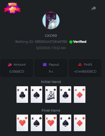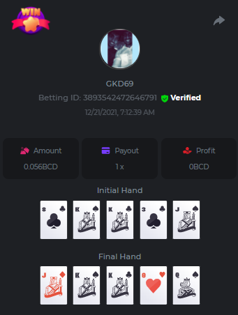 5. Betting ID: 4689516 (14 cards) https://bcgame-project.github.io/bcgame-blackjack/?s=YYOvj4oS%2FeLYG4tUhexnTsvIoj3ZEmAdggATvQi9Z3YEncIAbhfpyw1Q5kfB3njzOp55Ni9I53TONExCvl8Wh8sPK5PjDKpUcmtf2JWeGgrek38pxp1XVxuyB7PIq6%2FEMZh6qgLVUNZYTS3eZPcOUC0U2rc1YLWPBsSgP57nZMQ%3D&i=222768&range=127,141 ____________________________________________________________________________________________________ Betting ID: 4615658 (14 cards) https://bcgame-project.github.io/bcgame-blackjack/?s=lICcvpFFS9u%2BNgYd5yue6RN3tDUpgPdRnwerVoLeM06H8yTxmw5vvpXVpdzF7RjT%2Fh5MXTEwrdzl7CyC6rZ3y0Spf3mJ%2FlsPQqoRd2MT1NAct4FGI9H31aOGI0Lx85Wi70N4TYe1pS0Jrhyf5O8a%2B6uoNl67dsEY8z%2FTCYq9%2Bjw%3D&i=221653&range=237,251 Adding another entry cus im not sure if its eligible, however the bet is 1.25x and so it is a win technically. @digitaldash any further information about various payouts would be great, cus in BJ with insurance, splits etc the payouts could vary. ____________________________________________________________________________________________________ MASTER BONUS COMPLETED Betting ID: 4661357 (Player - 2,3,4,5,6) https://bcgame-project.github.io/bcgame-blackjack/?s=R6TLzK7mddp59iehua2Mu8Ey26Pv7MvpHXJUciGx1okbhSFQ3ZGYvJz0f%2FSQX0jxEQAWELPpD1Dgb2o7dYaEYikuSudEDMkptn0kboQoXyBQh2872kY7Z5QurjcR0tb6UKn8zfSwqeMQWZtysIwhrx1z955mrBYZDKZ3XfjCBZU%3D&i=222338&range=163,172