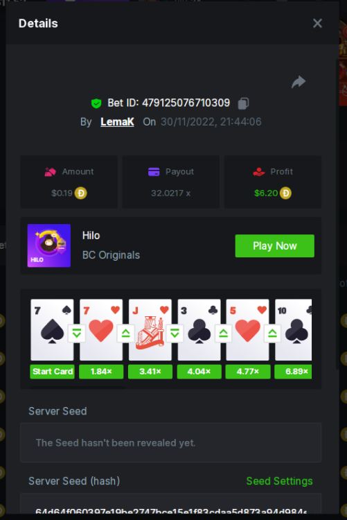 $2,500 Prestige Hi-Lo Multiplayer Challenge #57Lemak replied to BCGame_Ewa's topic in Past Challenges
