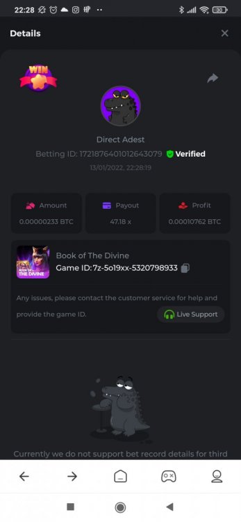 7. BGaming Aloha King Elvis 1079x Betting ID: 1719711979405323783 BetSoft Stay Frosty! 125.12x Betting ID: 1720232181555237383 GameArt Thunder Bird 125x Betting ID: 1719773651274634247 NoLimitCity Fire In The Hole xBomb 25x Betting ID: 1719843596858297472 Quickspin Crystal Prince 45.75x ID: 1719858823294417927 Playson Rise of Egypt Deluxe 84.75x ID: 1719860283160440071 Spinomenal Blue Panther Christmas Edition 75.4x ID: 1719867051949321991 Habanero Christmas Gift Rush 40x ID: 1719875274040843904 Booming Leprechaun's Lucky Barrel 328.25x ID: 1719877612368535559 Evoplay Ellen's Fortune 106.3x ID: 1719884972518772352 Ka Gaming Sky Journey 53.5x ID: 1719886920086344967 Fugaso Stoned Joker 5 200x ID: 1719889146701570823 Mascot Zeus the Thunderer 79.65x ID: 1719890709514832256 Platipus Little Witchy 22x ID: 1719894012473809415 Tom Horn 81 Frutas Grandes 94x ID: 1719928984479430407 Mancala Chinese Forest 32x ID: 1719948309797182592 Gamomat Land of Heroes 71x ID: 1719951664389513600 Booongo Wolf Saga 139x ID: 1719958039850218112 JDB Fortune Horse 40.3x ID: 1719984850682778496