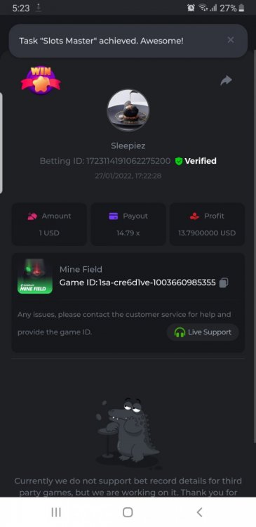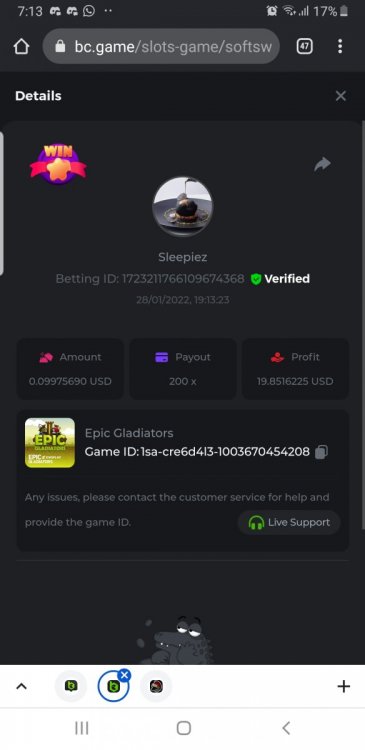 Sleepiez BGaming Candy Monsta (120.5x) Betting ID: 1719771673415153415 BetSoft Safari Sam2 (145.65x) Betting ID: 1720206799224722183 GameArt WolfHunt (66x) Betting ID: 1720209416468779136 NolimitCity Tombstone(145x) Betting ID: 1720210419231831047 Quickspin Most Wanted 3(106.88x) Betting ID: 1720214130037355392 Playson Book of Gold2 (114.75x) Betting ID: 1720237312263717504 Habanero Betting ID: 1720240090905229184 Pragmatic Xmas Carol 92.4x Betting ID: 1720297147592160519 Tiresome event playing so many slot just for 2000cash prize for 10player. Can you atleast have some automated scoring script so we dont need to keep posting one by one.
