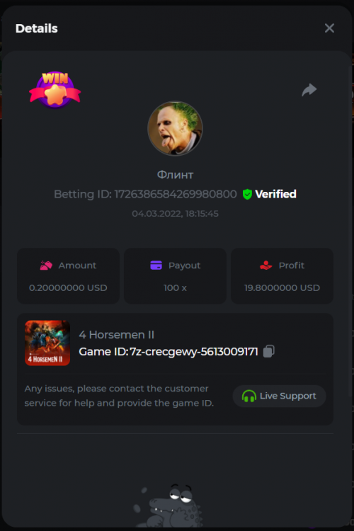 12. it is very difficult to catch a losing streak of 20-30 on any dice, you can try it yourself for verification, you need to post screenshots + ID of each bet