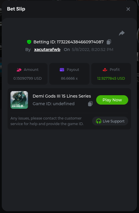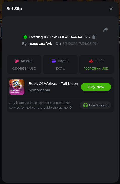 2. Book Of Wolves - Full Moon 22x https://bc.game/sd/?sd=10P5ZNGMKMFP5F The Ankh Protector 14.85 x https://bc.game/sd/?sd=10P60BJ4WH8D8Z Kupala 2 14 x https://bc.game/sd/?sd=10P6SX271AX7GZ Glowing Fruits 12 x https://bc.game/sd/?sd=10P6T7DQSRR5EB Demi Gods 4 - Thunderstorm 12.5 x https://bc.game/sd/?sd=10P6TGN12EPM37