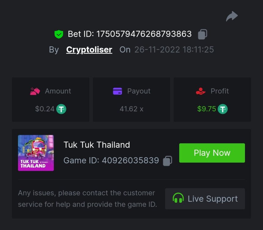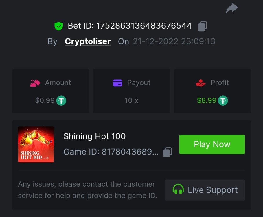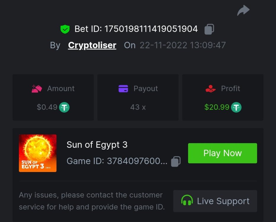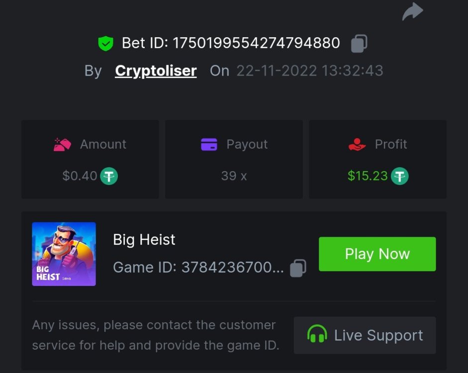 Green chilli - $0.2 https://bc.game/#/sd/10XOCC8WY49QMR Big heist - $0.1 https://bc.game/#/sd/10XPWKTFB31AMR Candy boom - $0.2 https://bc.game/#/sd/10XPULLOJNUEXF Sun of Egypt 3 - $0.25 https://bc.game/#/sd/10XPV5PGDYT5AR -