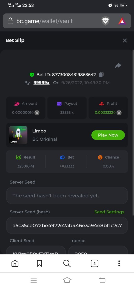 Black Tiger Posted September 26, 2022 Share Posted September 26, 2022 (edited) Read Carefully Before Start To Hunt Daily Challenges #26: LIMBOHunt :Win the highest pay outMin Payout requirement 500xMin Level 4️Duration Starting : Now End time : 23.59 UTC Time How to Join? Only Post on BC.Game Telegram Official HEREMake screenshot + paste your bet link + UID or profile link To get bet link can check HERE Any coin allowedReward Prizes 1st Place....... $7 BCD2nd Place..... $5 BCD3rd Place...... $4 BCD 🎖4th Place......$3 BCD5th - 10th Place......$1 BCD 🏵 Winners will be announcing next day after Roll Point ========================== On Going Event $4,000 Top Tier Gameart Multiplier Battle! $2,500 Prestige Savior Sword Challenge #47 Soccer Top 5 league 100% cashback !#2$250 BC.GAME SPORTS PARLAYS CHALLENGES #22$500,000 Spinomenal's Grand Holiday Tournament TOUCHDOWN! NFL 50% Cashback ! #2 Edited September 26, 2022 by Black Tiger Link to comment Share on other sites More sharing options...