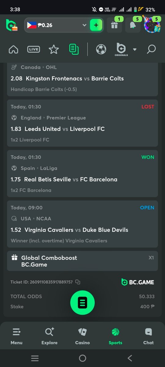 GG29 Posted 23 hours ago Share Posted 23 hours ago Someone to explain why my parlay lost? Liverpool lead 2-0 on this match and i expecting a win on this promo but the end im dissapointed. @Mat sir can you check this @BC ASSIST Link to comment Share on other sites More sharing options...